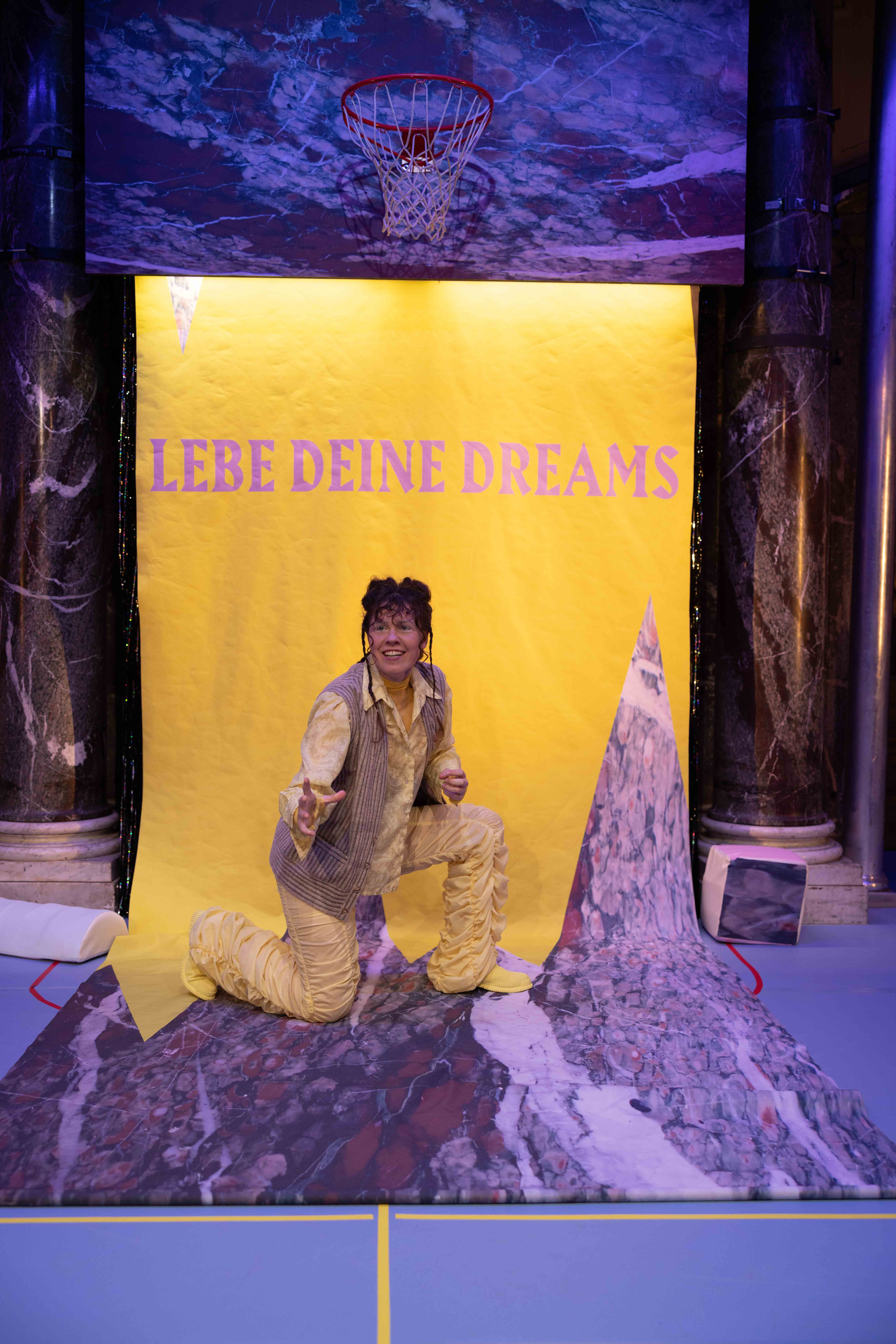 Die sechzehnjährige Sam hat ihr Abschlusszeugnis gefälscht. Nach unten! Sie will nicht weiterstudieren. Sie will eine Lehre machen, um möglichst bald ihre Mutter und den kleinen Bruder Stef finanziell unterstützen zu können. Sie will für ihre Mitschüler*innen keine Rede halten, schon gar nicht zu einem so bescheuerten Motto wie „Lebe deine Dreams“. Sam wird von ihren Ängsten gejagt und findet Unterschlupf in ihren Träumen. Sie träumt ihren Vater, der die Familie verlassen hat. Sie träumt von Ezra, in den sie verknallt ist, aber auch von einer Mitschülerin namens Sex- traum. Sie träumt von Reden, die sie halten könnte, in denen sie endlich ihre Meinung sagt, von einem Chaos aus Luftballons und Girlanden, von einer Band namens „Low life rich kids“. Sams Träume sind Wahnsinn – aber deswegen nicht weniger echt. ÜBER NACHT von Lucien Haug ist ein freches, skurriles, warmherziges Stück, dessen Hauptfigur ihrer eigenen Unsicherheit zum Trotz die ganze Welt schlagfertig in Frage stellt. Nach der Uraufführung am jungen theater basel ist im Vestibül die Österreichische Erstaufführung zu sehen. Regie: Rachel Müller Musik: Bernhard Eder Dramaturgie: Jeroen Versteele Bühnenbild: Lara Scherpinski Kostümbild: Maria-Lena Poindl Darstellerinnen: Coco Brell, Mara Romei , Simon Schofeld